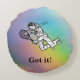 Astronaut Spaceman Tennis Player With Text Round Pillow