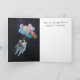 A beautiful digital art piece of an astronaut floating in space using a bunch of colorful balloons. Ideal design for anyone who loves to dream, loves outer space, the stars, the planets, the universe or simply loves surrealist art. Perfect card to say "congratulations" or "well done!". Customize text on cover and inside.