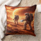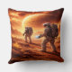 Astronauts explore orange planet throw pillow