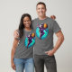 My 11 yo wore adult XL (5’7” 165#). The 8yo is small framed. She wore adult small and tied it in the back. Grandma wore adult large with long sleeve shirt underneath. Tall girl adult medium. Dark haired male adult large. Good quality dark Heather gray, Gildan brand shirt. -it was next up from basic choice and cost about $20 per shirt. Not too thick or thin. Washed and dried well, no major shrinkage. Not see-through. Can wear a bra under it fine. Screen print is just as shown and well done, front and back.