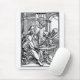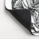 Astronomer Mousepad. Old black and white woodcut illustration of astronomer at a table with skeleton holding skull to one side.