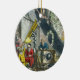 Astronomers looking through a telescope, detail fr ceramic ornament