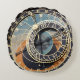photography in black blue and orange. detailed color photography of a historical, medieval landmark, an old astronomical clock in prague in europe with blue, orange, and brown, astrology signs and roman numerals. photography in blacks blues and oranges.