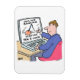 Whilst online banking a man gets offered a virtual pen and chain. Funny banking themed cartoon in colour. Gift for a banker.