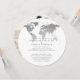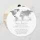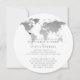 Invitation for an at-home reception after a destination wedding or elopement with an elegant monochrome silver gray world map and classic chic fonts with a wedding photo on the back. It's common to have a full reception or celebration after a small wedding abroad or impromptu beach wedding when your family wants to celebrate with you just the same as if you had gotten married in your home town and it's a chance to have fun with the invitations or have a travel theme reception if the couple frequently travel or met while traveling. Our globe invitations are die cut into a round shape that fit into square envelopes and really make a statement in the mail. Add one of our travel theme rsvp cards to complete the set, check out the Paper Grape Destinations Zazzle Designer Store.