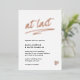 Modern wedding invitation featuring a simple design with "at last" in a handwritten brush script typography along with a hand drawn heart in real foil. All text may be changed to foil in the design editing tool. The simplicity of the layout adds an elegant touch to this modern wedding invitation.