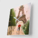 Eiffel Tower - Paris France, and Lovers under the red umbrella - acrylic painting art "At the Eiffel Tower" & designed with hour & minute dials on any Zazzle Wall Clocks.
