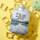 At the Lake We. Do Beer Thirty and Wine O'clock modern typology font with tranquil calm blue lake surrounded by green trees and wooden dock image.
