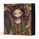 "At the Masquerade Ball" - painted this one around Mardi Gras ... Carneval ... Masquerades! I've painted a beautiful big eyed maiden in an elaborate dress (in the traditional Purple, Green, and Gold of the New Orleans Mardi Gras!) - at a masquerade ball. Masked characters set the scene behind her - including a Plague Doctor sneaking in on the side. Beautiful Venetian masks. The colors in this are subtle, but the greens and violets (particularly her violet eyes!) really "pop" and bring it together. I LOVE this painting!!! This is my own original acrylic painting. **These binders are PERFECT for your postcard collection, prints, photo album, ACEO cards, etc. Or to make school/work a little more interesting!