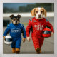 Jed the Lemon Beagle and Louie the JackChi are cosplaying at the track, ready to race for Lowes and The Pizza Tree (childhood dream restaurant of my sons)