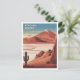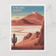 A breathtaking and nostalgic depiction of the Atacama Desert, one of the driest places on Earth, known for its stunning landscapes, unique geological formations, and vibrant colors. The design captures the stark beauty of the desert with its expansive salt flats, towering sand dunes, and the mesmerizing Valle de la Luna. Rendered in a vintage style, the artwork evokes the serene and otherworldly atmosphere of the Atacama, inviting viewers to explore its dramatic vistas, rich natural beauty.