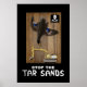 A duck mount featuring an oiled, dead Mallard duck, earth moving equipment, and a skull and crossbones. Text reading "STOP THE TAR SANDS" also appears. Woe to any waterfowl landing in a toxic tailings pond in Alberta where a extremely viscous petroleum is extracted from tar sands (aka oil sands) with horrible environmental effects. The Alberta tar sands consist of heavy crude oil mixed with sand, clay and bitumen. Extraction entails burning natural gas to generate enough heat and steam to melt the oil out of the sand. As many as five barrels of water are needed to produce a single barrel of oil. Every day millions of gallons of water are contaminated with chemicals, including arsenic, copper, lead and zinc, to basically separate tar sands oil (called diluted bitumen) from the sand. But the water is so contaminated after this process that they have to store it in toxic sludge pits called tailings ponds. It is estimated that 3 millions gallons of contaminated water leaks from tailing ponds into Alberta's Athabasca River, and the surrounding landscape, every day. Please say no to tar sands.
