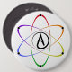 The Atheist Atom Symbol represents science, atheism, and the pursuit of knowledge and truth. The rainbow colors represent respect and acceptance for human diversity and LGBTQIA people.