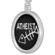 The printing was perfect. And the quality of the necklace was surprising. An elegant and lovely gift for Atheists. Amazing printing. The design is sharp and clear and works well with the silver of the necklace.