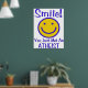 Put a human face on Atheism with a bright yellow face outlined in blue with blue letters that says: "Smile! You just met an ATHEIST."