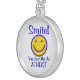 Put a human face on Atheism with a bright yellow face outlined in blue with blue letters that says: "Smile! You just met an ATHEIST."
