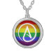 Atheist Symbol over Rainbow Silver Plated Necklace