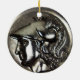 Round ceramic ornament with an image, on both sides, of an antique medallion featuring an image of Athena, Greek Goddess of war, wisdom, and crafts. See the entire Goddess Ornament collection in the PARTY FAVORS section.