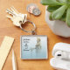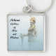 Large square premium keychain with an image on gradated blue of a statue of Athena, the Greek Goddess of wisdom, symbolized by the Pearl of Wisdom she holds in her outstretched hand, and of war and crafts. See the entire Toga Keychain collection in the PARTY FAVORS section.