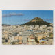 A panoramic view over the rooftops of Athens, Greece with Mount Lycabettus towering above.