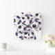 This soccer themed wall clock features the image of a cluster of varied size purple, black & white soccer balls - customize with the athlete's name - by katz_d_zynes