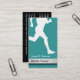 Athletic training business cards with image of a long distance runner on the front in this modern two side business card design with text layout you can easily customize to your liking. Designed for themes related to fitness, endurance, physical therapy, or physical rehabilitation.