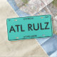 This license plate showcases a bold and spirited design with the phrase "ATL RULZ" prominently displayed, representing Atlanta's vibrant culture. Set against a refreshing teal background, the plate also features the state name "GEORGIA" at the top and the motivational tagline "LIVING LARGE" at the bottom. Marked with "01 JUN," this plate offers a touch of personalization that reflects a specific time or sentiment. Each aspect of this license plate, from the text to the background color, is fully customizable. This flexibility allows you to adapt the design to reflect your personal style or to tailor it to another locale or phrase, making it a versatile choice for showcasing city pride or personal identity on any vehicle.