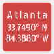 Atlanta Latitude Longitude Red Square Sticker