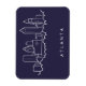 This design features a hand drawn sketch of the Atlanta skyline on a purple background.