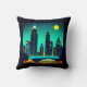 Pillow in a stylized poster of Atlanta showing off the city’s iconic skyline under a glowing night sky, with a bold, retro-futuristic vibe. The bright teal and yellow color scheme and the glowing dome in the foreground adds a sleek, modern twist.