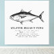 Detailed natural history illustration of the Atlantic Bluefin Tuna, featuring biological facts. Perfect for marine biologists and ocean lovers.