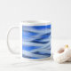Soothing shades of blue in an abstract pattern reminiscent of ocean swells for your mid-morning brew
