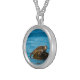 I chose gold plated so that the metal would not react with my skin oils and perspiration. But, I changed the necklace from the gold plated one to a sterling silver. My skin cells will tarnish the silver. But it will not look as bad if some portion of the gold plated necklace somehow became compromised. Zazzle did a find job turning the picture into a pendant for me. As you can see, the colors and the printing of the final product, match the preview. The picture I took is not very clear. But I am pleased with the product I received.