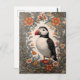 Atlantic Puffin William Morris Inspired Floral Postcard
