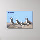Puffins at rest on the rocks. Customizable text reading, "Puffins" also appears.