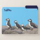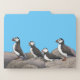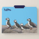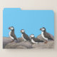 Puffins at rest on the rocks. Customizable text reading, "Puffins" also appears.