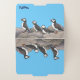 The Atlantic Puffin (Fratercula arctica) feeds primarily by diving in the water. They breed in large colonies on coastal cliffs or offshore islands in the North Atlantic. Puffins shed the colorful outer parts of their bills after the breeding season, leaving a smaller and duller beak. Their short wings are adapted for swimming with a flying technique under water. In the air, they beat their wings rapidly (up to 400 times per minute) in swift flight, often flying low over the ocean's surface.
