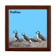 Puffins at rest on the rocks. Customizable text reading, "Puffins" also appears.