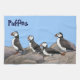 Puffins at rest on the rocks. The Atlantic Puffin (Fratercula arctica) feeds primarily by diving in the water. They breed in large colonies on coastal cliffs or offshore islands in the North Atlantic. Puffins shed the colorful outer parts of their bills after the breeding season, leaving a smaller and duller beak. Their short wings are adapted for swimming with a flying technique under water. In the air, they beat their wings rapidly (up to 400 times per minute) in swift flight, often flying low over the ocean's surface.