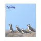 Puffins at rest on the rocks. Customizable text reading, "Puffins" also appears.