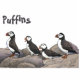 Puffins at rest on the rocks. Customizable text reading, "Puffins" also appears.