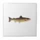 This fishing theme decorative ceramic tile celebrates the Atlantic salmon, one of the world's top sport fish. In North America, Atlantic salmon are found from the Canadian Maritimes south to New England. These iconic fish are known for their leaping ability, strong runs, and epic fights when hooked with fly fishing gear. Atlantic salmon are anadromous; young fish are hatched in freshwater streams. Once salmon parr are large enough, they migrate out to sea. The cycle repeats itself when adult salmon return to their natal streams to spawn. This tile could be used as a coaster, wall decoration, or other needs.