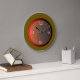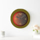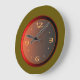 An atmospheric wall clock in warm moss green with lighting effects in red! This clock design also features numerals in lemon yellow !