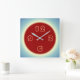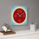 Atmospheric Lemon Blue with Red Centre Square Wall Clock