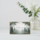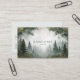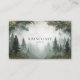 Capture the serene mystery of a misty morning in the forest with this atmospheric business card. This design features a breathtakingly realistic and painterly landscape of a dense evergreen forest veiled in a thick, soft fog. A winding path disappears into the mist, creating a sense of journey, peace, and discovery. The natural framing by majestic trees at the top draws the eye into the tranquil scene, while the muted, earthy color palette of soft greens and grays enhances the moody and peaceful atmosphere.