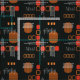 Atomic Abstract Barkcloth Black Burnt Orange Fabric