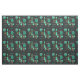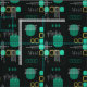 Atomic Abstract Barkcloth Black Turquoise Fabric