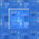 A mid century modern abstract art design that would have fit right in during the 1950s. Various shapes of oval circles and lines in true blue.