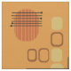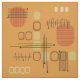 A mid century modern abstract art design that would have fit right in during the 1950s. Various shapes of oval circles and lines in ochre, orange and gold.