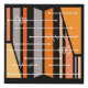 Mid century modern geometric abstract art with rectangles in different sizes and atomic era styled lines.